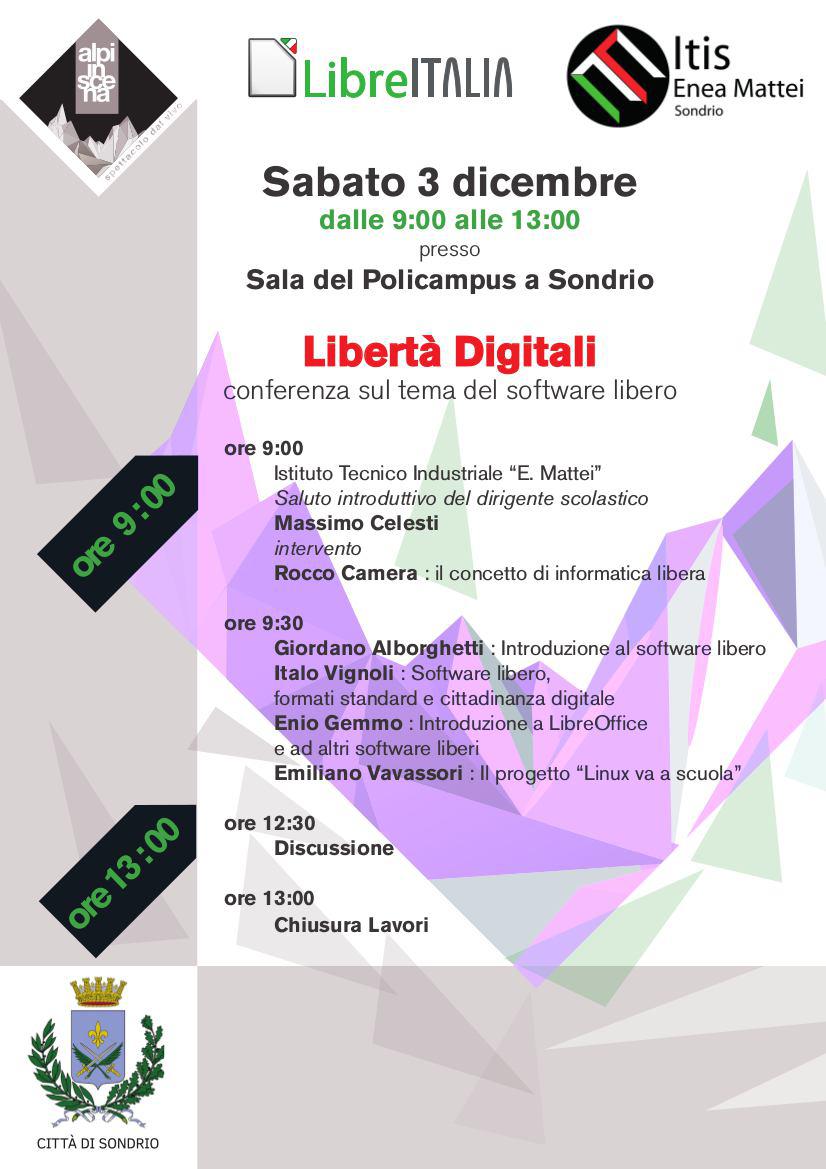 sul tema del software libero, dal titolo Libertà digitali.
